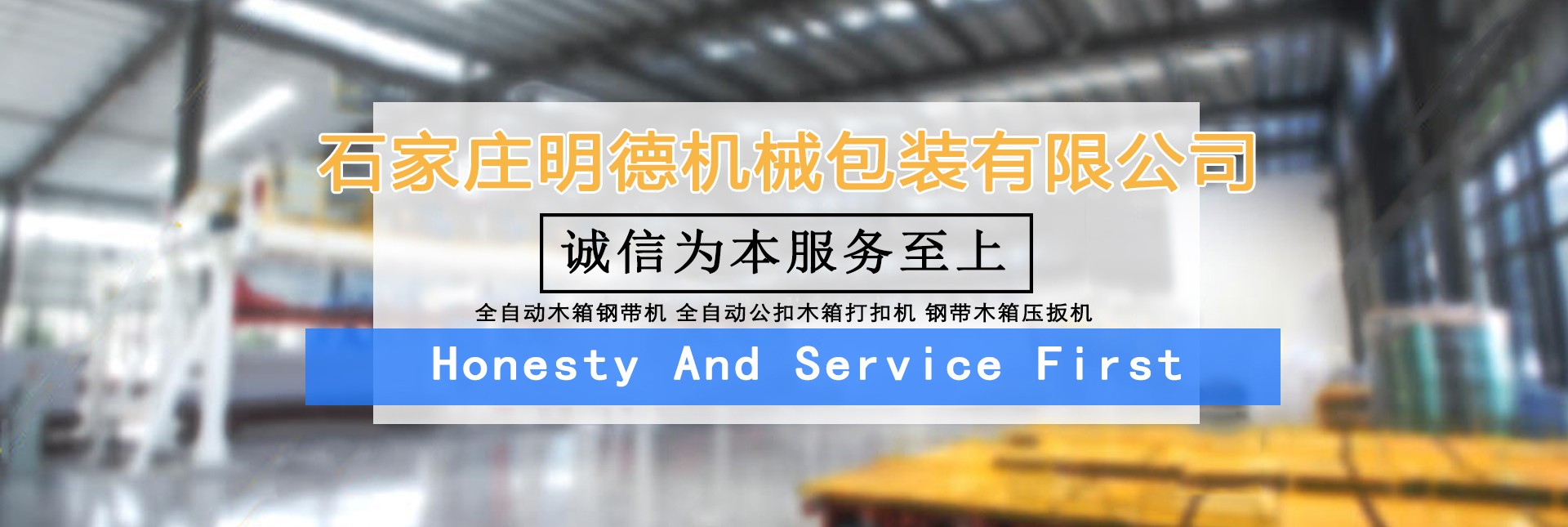 石家莊明德包裝機械有限公司,是國內(nèi)專業(yè)生產(chǎn)木箱雙條鋼帶機、美式托盤打釘機械、托盤刨槽機、倒角機、木包裝箱、木托盤的生產(chǎn)廠家,目前擁有廠房3000多平方米,自動化生產(chǎn)設備數(shù)十套。 公司下轄包裝機械事業(yè)部,主要生產(chǎn)新型全自動木箱鋼帶機、全自動(半自動)木箱鎖扣機、折疊鋼帶箱機械、鋼帶箱壓板機、美式托盤自動打釘機、托盤刨槽機、倒角機等相關鋼帶木箱機械、木工機械、配套產(chǎn)品,設備主體部分由高品質(zhì)機械和高精度模具組成,液壓系統(tǒng)、伺服系統(tǒng)和低壓配電單元的主要元器件,均選用西門子、施耐德等國際和國內(nèi)產(chǎn)品,大大提升了產(chǎn)品質(zhì)量,設備長時間運行穩(wěn)定可靠,獲得了用戶的一致好評。 公司下轄包裝制品事業(yè)部,主要生產(chǎn)各種實木木箱、膠合板鋼帶木箱和實木熏蒸托盤、歐標托盤、美標托盤、亞標托盤及相關配套產(chǎn)品,木箱和托盤均選用優(yōu)質(zhì)九厘板材和俄羅斯原木作為原材料,從生產(chǎn)制造、成品組裝、出廠質(zhì)檢到送貨上門,售后服務等,做到一條龍服務,始終堅持“把質(zhì)量做到更好,把成本降到更低,把實惠讓給客戶“的經(jīng)營原則。